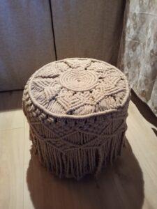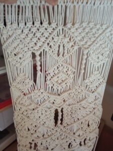 is a textile art made by knotting cords by hand, without needles, hooks, or looms to create various items. Materials traditionally used are cotton, linen, hemp, jute, wool, and today also recycled and natural fibers – reflecting macramé’s close relationship with nature and sustainability. The word macramé comes from the Arabic “migramah”, meaning fringe or ornamental edging. Macramé dates back to at least the 13th century, when Arab weavers used decorative knots to finish the edges of woven textiles. Through trade routes and maritime travel, the technique spread across North Africa, the Middle East, and Europe. Sailors played a key role in sharing macramé, knotting items during long voyages and trading them in ports. This ancient art form has evolved over thousands of years, originating from primitive knotting techniques used for functional purposes such as lashing rafts and crafting fishing nets to creating many beautiful and useful object. Macramé saw a major revival during the 1970s, linked to handmade culture and natural living – and has returned strongly today with the rise of slow craft and sustainable design. It is used for home décor (wall hangings, plant hangers, curtains, table runners), fashion & accessories (belts, bags, jewelry, sandals), functional objects (Hammocks, nets, baskets) and often as a meditative, slow-making process, encouraging focus, relaxation, and connection through repetitive handwork.