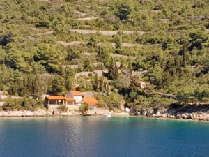 We offer 8 places in three traditional houses located directly by the sea, nestled 7 km from the port of Vis in the sandy bay of Stončica. Located on the sunny, secluded side of the bay, the remote venue offers privacy and no neighboring buildings nearby. Surrounded by nature, scenic paths lead along the sea.