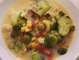 - Nourishing, prepared and served vegetarian or vegan dinner with main dish, sides, and fresh salad.